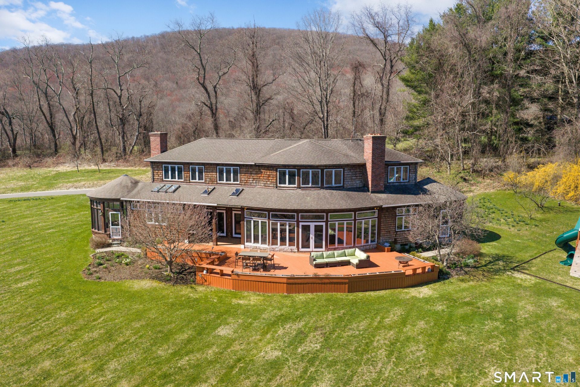 Two Houses, One Kent Hollow Compound - 15.66 Private Acres A rare Litchfield County offering in the exclusive Kent Estate area of South Kent: two distinct homes on 15.66 secluded acres with views over Kent Hollow, a brook running through the property, and privacy that's nearly impossible to find today. The main house is a 3,400 sq ft Southwestern-style contemporary built for light and landscape - walls of glass frame long views, and an open floor plan flows from the chef's kitchen to expansive decks and two screened porches for three-season living. Four bedrooms (first-floor bedroom currently configured as a den), 2.5 baths, four fireplaces. Kitchen: Viking double oven, Viking 6-burner gas cooktop, 2x Miele dishwashers, Sub-Zero, double sinks, wine fridge, Carrara marble countertops. The second home is a 1955 midcentury - 2BR/2.5BA - with its original character intact. A fireplace and expansive deck make it fully livable, whether as a guest house, studio, or weekend retreat. Together: ~4,500 sq ft, six bedrooms, five baths, five fireplaces, two screened porches, expansive decks on both homes - two architectural statements from two eras, set on 15.66 acres of woods, water, and quiet.